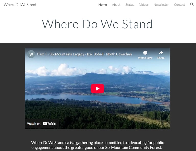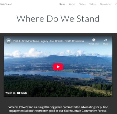 Where Do We Stand is a North Cowichan Community Forest Advocacy Group.